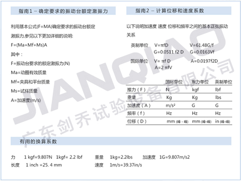 振動試驗作為航空、航天、國防、汽車、電子等行業進行產品結構的耐振性、可靠性和完好性測試的重要工具,大多數企業在選擇振動試驗臺時,搞不明白推力、加速度與試驗品重量之間的關系,這也導致選型困難,買錯設備的情況發生,下面由廣東劍喬小編給大家普及一下: