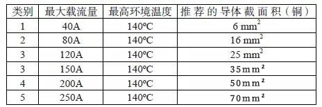 2.2.1 最大電流承載能力:該測(cè)試是為了確定線束在開始發(fā)生過度熱降解和/或具有超額電阻之前能夠承受的最大試驗(yàn)電流。實(shí)驗(yàn)的合格標(biāo)志是在規(guī)定的載流范圍內(nèi),整個(gè)連接系統(tǒng)內(nèi)任何一點(diǎn)的溫升不可超過55度或不可超出產(chǎn)品的使用極限。目前不同規(guī)格線束將依據(jù)線纜截面積進(jìn)行載流劃分,具體可參看下表2: