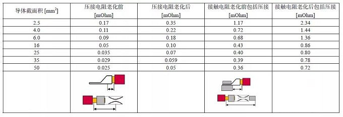 2.2.3 電壓降測(cè)試:該項(xiàng)測(cè)試是為了確定在標(biāo)稱電流狀態(tài)下由于導(dǎo)線壓接和接觸面區(qū)域的電阻而產(chǎn)生的電壓降??梢愿鶕?jù)電壓降計(jì)算出總連接電阻。根據(jù)不同的線束規(guī)格,線束的壓接點(diǎn)的接觸電阻可參看表3: