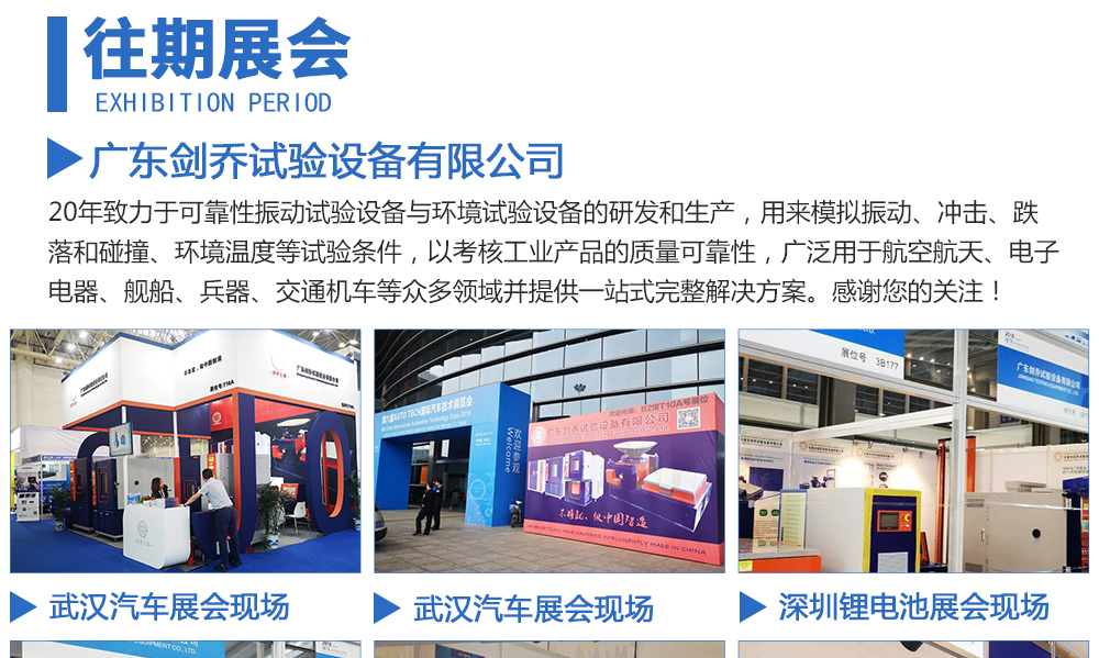 用途:廣東劍喬試驗(yàn)設(shè)備有限公司,20年致力于可靠性振動(dòng)試驗(yàn)設(shè)備與環(huán)境試驗(yàn)設(shè)備的研發(fā)和生產(chǎn),用來模擬振動(dòng)、沖擊、跌落和碰撞、環(huán)境溫度等試驗(yàn)條件,以考核工業(yè)產(chǎn)品的質(zhì)量可靠性,廣泛用于